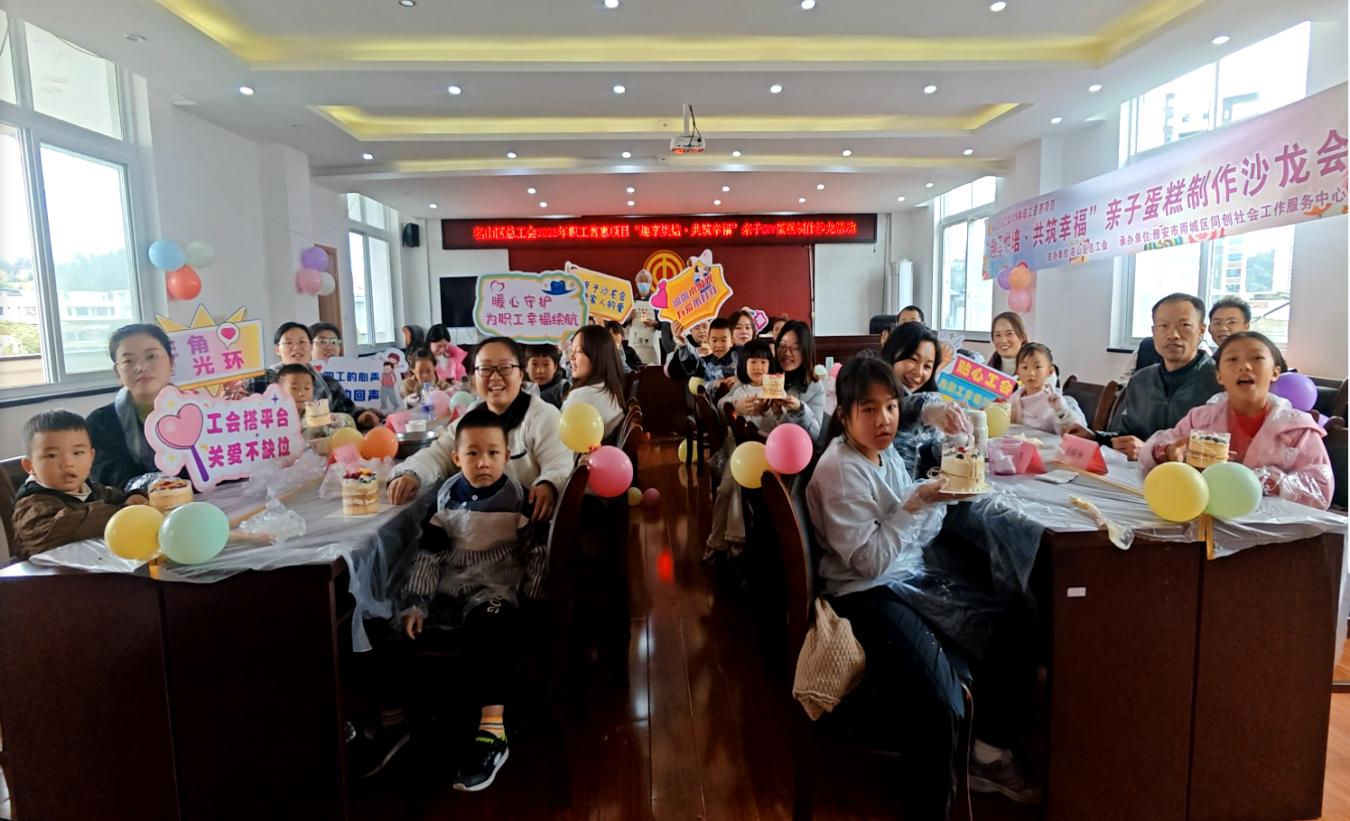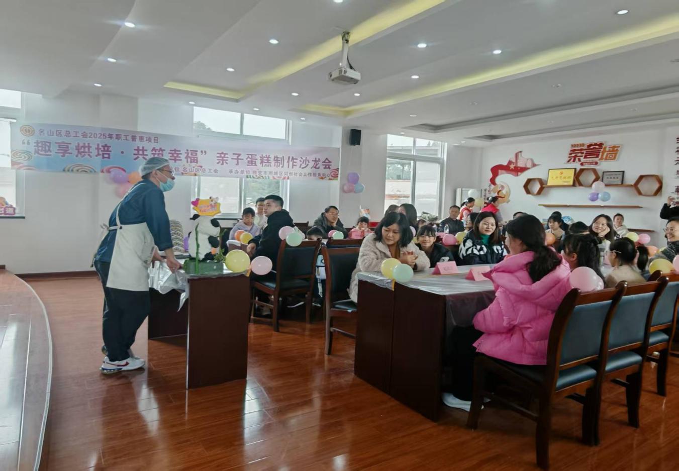 11月8日,雅安市名山区总工会在工人文化宫举办普惠兴趣班系列活动之“趣享烘焙·共筑幸福”亲子蛋糕制作沙龙活动,16对职工家庭的家长与子女共同参与。活动特别邀请“四川省工匠”“四川省技术能手”“四川省五一劳动奖章”彭世林担任指导嘉宾,通过生动的劳动教育课与实践体验,让3-12岁儿童在趣味互动中感受“工匠精神、劳模精神、劳动精神”的内涵,在心中播下热爱劳动的种子。