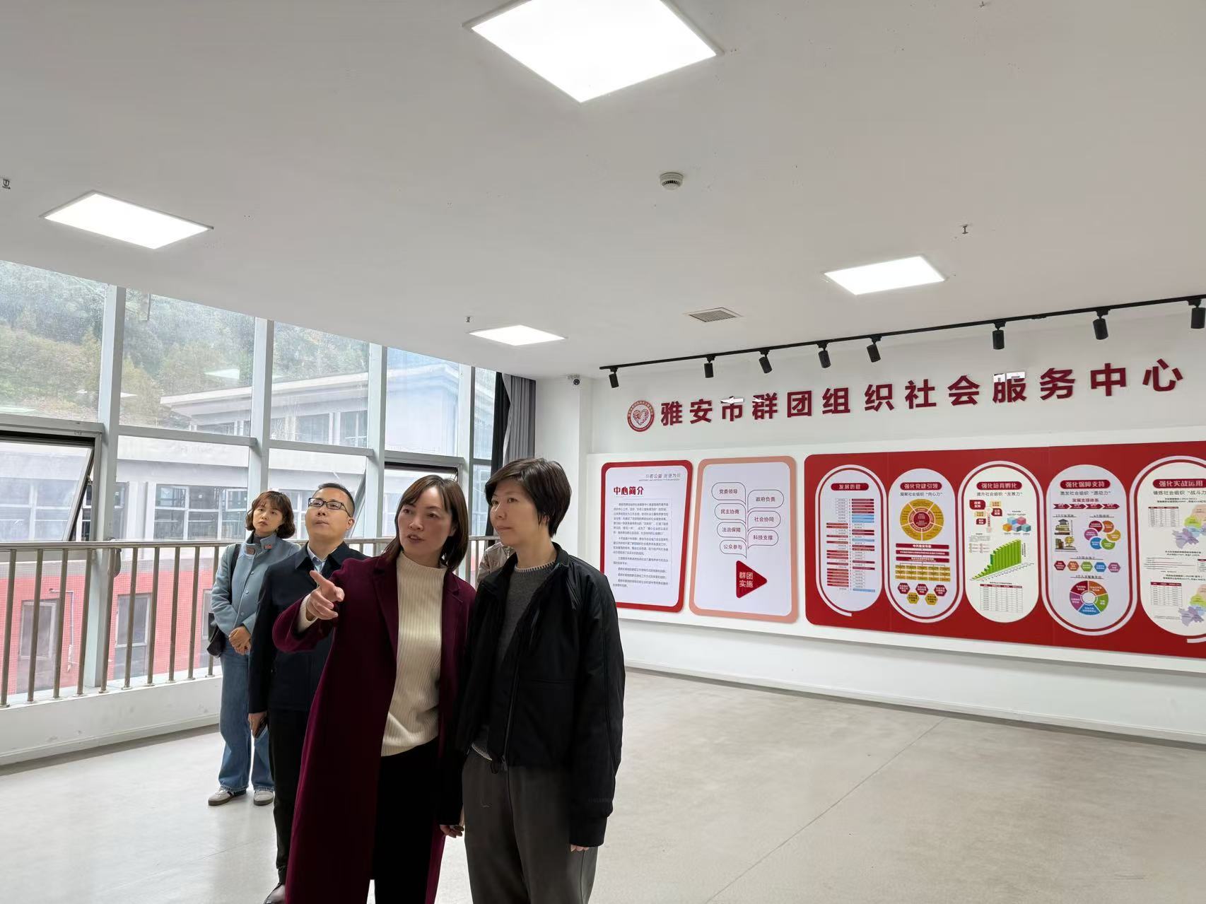 11月12日,雅安市副市长孙云一一行赴市群团组织社会服务中心调研。市妇联主席、市群团中心主任任昌蓉,市妇联副主席、市群团中心常务副主任邹再蓉,团市委副书记、市群团中心副主任王东林陪同。