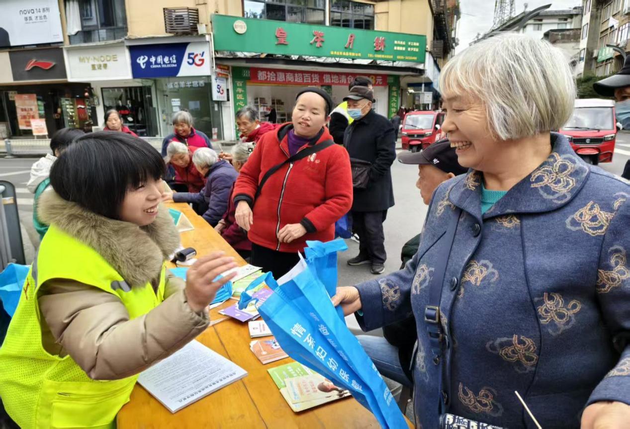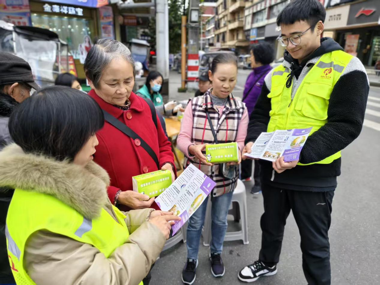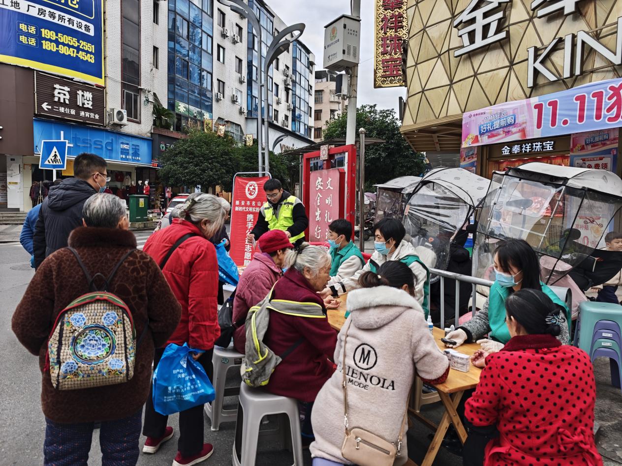 为有效提升居民对社保政策的理解与运用能力,切实解决群众在参保、缴费及就医过程中遇到的难题,2025年11月19日,在中共雅安市名山区委社会工作部的指导下,名山区自强残疾人创业服务中心携手“社医联盟”单位——蒙阳街道社区卫生服务中心,于蒙阳街道中心社区民益路十字路口,共同组织了一场集养老保险、医疗保险政策宣传与公益义诊于一体的便民服务活动。