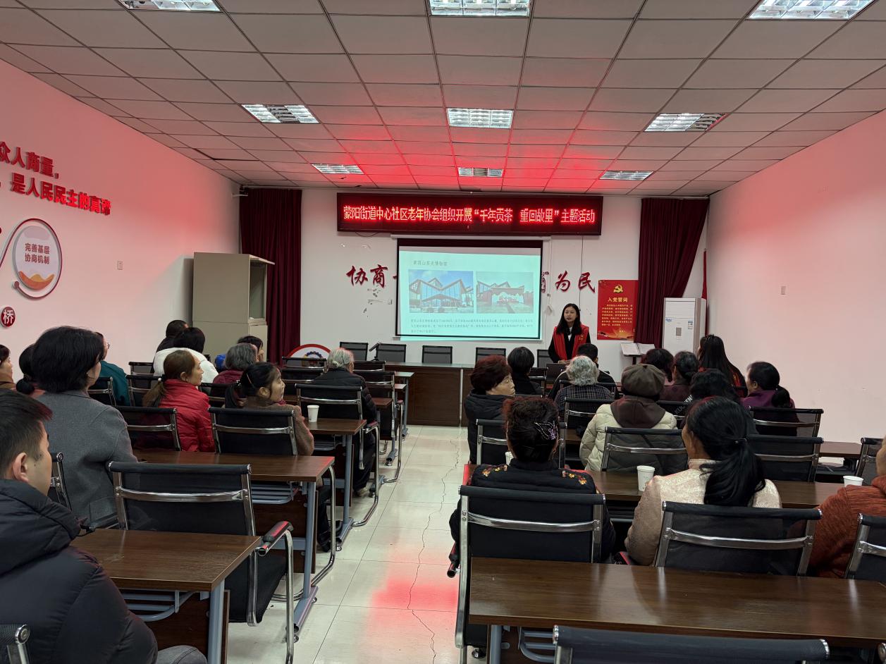 活动伊始,居民们在社区工作人员的组织下有序签到入场。蒙顶山茶史博物馆资深讲解员卢祺借助精心准备的PPT,从蒙顶山贡茶的起源传说切入,系统梳理了其作为历代贡品的历史脉络与典故,深入阐释了其中蕴含的文化内涵与相关文物的艺术特色。卢祺生动的讲解,引领居民步入历史长廊,使沉寂于史册的贡茶文化变得鲜活立体,让居民全方位、多角度地领略到“千年贡茶”的独特韵味。讲座内容引人入胜,现场掌声阵阵,气氛融洽。