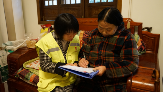 区社工总站依据社工及志愿者的前期走访需求评估,精准识别服务对象。走进困境老人家中,将凝聚着爱心与关怀的多功能防滑拐杖、长寿面、白糖等物资逐一送到老人家中。社工李桂芳、杨欢则充分发挥专业优势,运用同理、倾听、专注等专业技巧,与老人们促膝长谈,逐渐打开他(她)们心扉,唠起了家常,倾听他(她)们生活中的点滴,让老人们感受到被理解、被接纳的温暖,同时鼓励他们以积极心态面对生活困难。志愿者张君洪、刘彬则不仅能“坐下来聊”,还“动起来干”。他们主动检查老人家中的用火用电安全,细心排查隐患;见到独居老人家中环境杂乱,便毫不犹豫地动手帮忙打扫卫生、整理家务,用切实行动改善老人的居住环境。