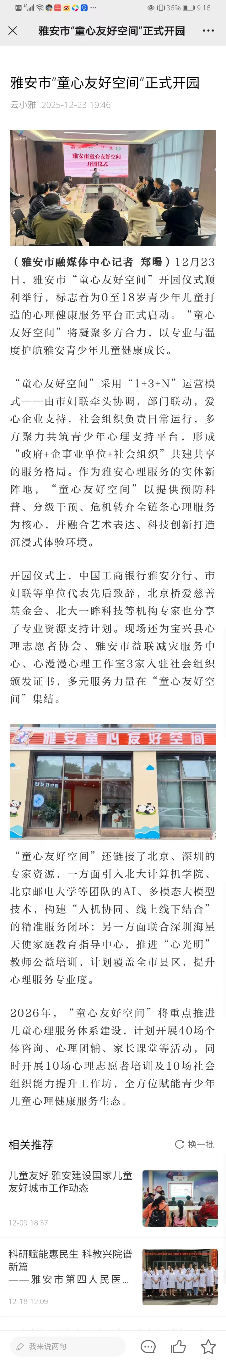 雅安市“童心友好空间”正式开园