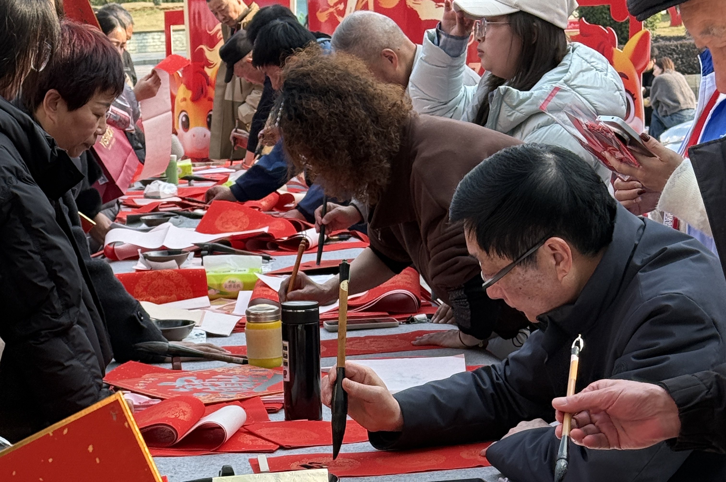 活动中,市群团中心发挥桥梁纽带作用,组织社会组织、志愿者协助市内书法老师及爱好者现场书写春联、“福”字,作品寓意吉祥,承载着对市民的新年期许与美好祝福。